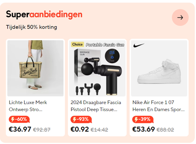 - Supercompetitieve prijzen en permanente promoties: de webshop biedt vaak aanzienlijke kortingen, tot wel 90%, via flash sales of evenementen zoals Single's Day (11/11). Deze strategie creëert een gevoel van urgentie dat impulsaankopen aanmoedigt zonder altijd de kwaliteit van de producten te controleren.