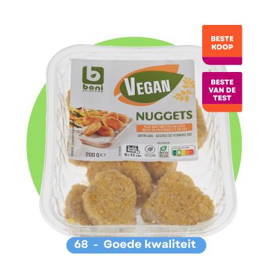 De vegan nuggets van Boni Selection behaalden een score van 68 op 100. Ze vielen behoorlijk in de smaak bij onze experts tijdens de blinde smaakproef.