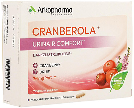 - De naam van dit product ("CRAN"berola) wekt de indruk dat er veel cranberry inzit, maar dat klopt niet. Twee capsules bevatten slechts 20 mg veenbespoeder.