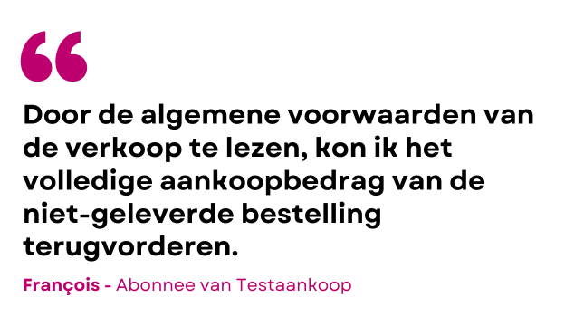 Eens de afgesproken levertermijn was verstreken, ontdekte François in de algemene voorwaarden van O&O Trendy Wonen een belangrijk element: als de levering niet binnen de drie maanden plaatsvindt, heeft de consument recht op een volledige terugbetaling van het aankoopbedrag.