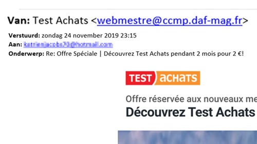 - Let op het e-mailadres. Het lijkt in de verste verte niet op een officieel e-mailadres van Test Aankoop.