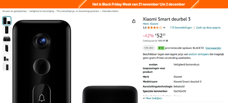 Voorbeeld 2: Deze deurbel is in prijs verhoogd, en wordt toch nog geafficheerd met een korting.
