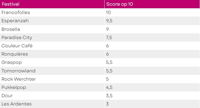 Meer info over hoe de festivals scoorden