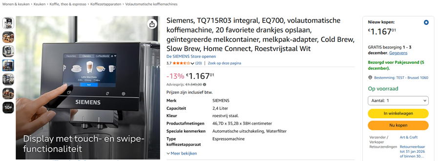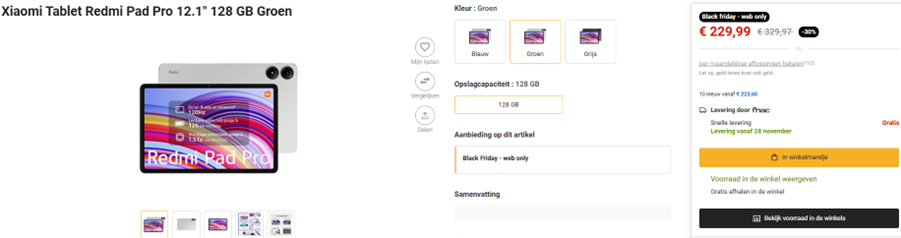 Wat ook opvalt dit jaar: Black Friday is geen dag, geen week, maar een volledige maand. De eerste Black Friday-deals werden losgelaten vanaf eind oktober, maar vooral 7 november (3 weken voor Black Friday zelf) werd het duidelijk dat de prijzen significant lager begonnen te liggen. Het percentage goede deals op Testaankoops platform ‘Rate My Deal’ sprong die dag plots van gemiddeld 18% naar 22%. Ondertussen is het gestegen naar 30%.