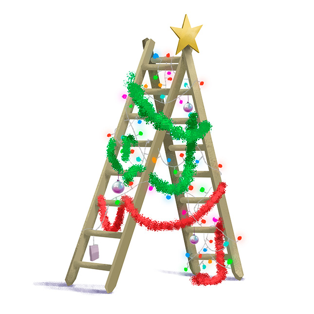 Zet de ladder open, versier als een kerstboom. Ideaal voor grote ruimtes. |