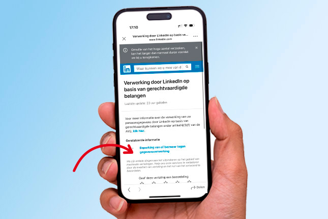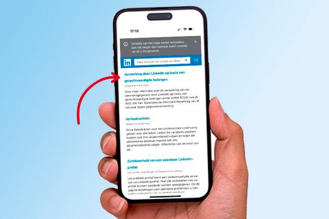 Hier lees je hoe je bezwaar kunt maken tegen het gebruik van je gegevens op de LinkedIn app: