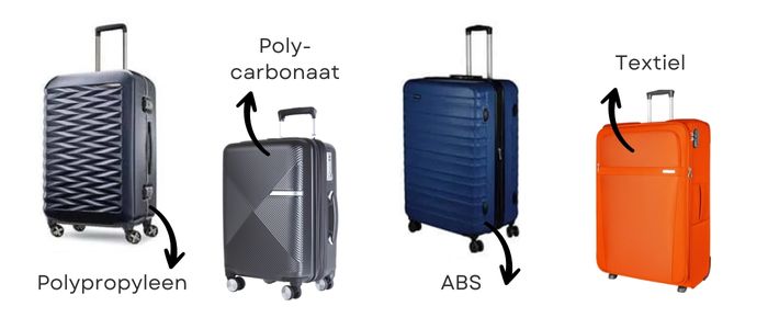 De lichtste soorten zijn textiel en polycarbonaat (hard materiaal). Deze laatste is het nieuwste, lichtste en het meest flexibele kunststofmateriaal. Deze koffers hebben meestal een ritssluiting en soms ook een tweede rits die wat diepte en intern volume toevoegt. Als je de uitbreiding opent, voldoe je mogelijk niet meer aan de maximale afmetingen voor koffers in de cabine.