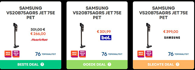 Om je te helpen deze misleidende kortingen te herkennen, laten wij op Rate My Deal de prijsevolutie zien naast de promotieprijzen. Op die manier kun je de werkelijke waarde van promoties beoordelen. Doordat wij de prijstrend van elk product over de laatste maanden controleren en vergelijken met die van de concurrentie, kunnen wij valse kortingen opsporen en rapporteren, zodat je niet wordt afgezet.