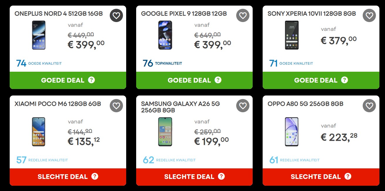 Heb je een nieuwe wasmachine gespot of wil je tijdens de solden of Black Friday een nieuwe smartphone kopen? Vergeet niet om voor je aankoop onze vergelijkers te bekijken. Met behulp van Rate My Deal en onze verschillende vergelijkers weet je zeker dat je bewust en verantwoord aan de beste prijs koopt, op basis van technische informatie, onze tests en prijsanalyses.