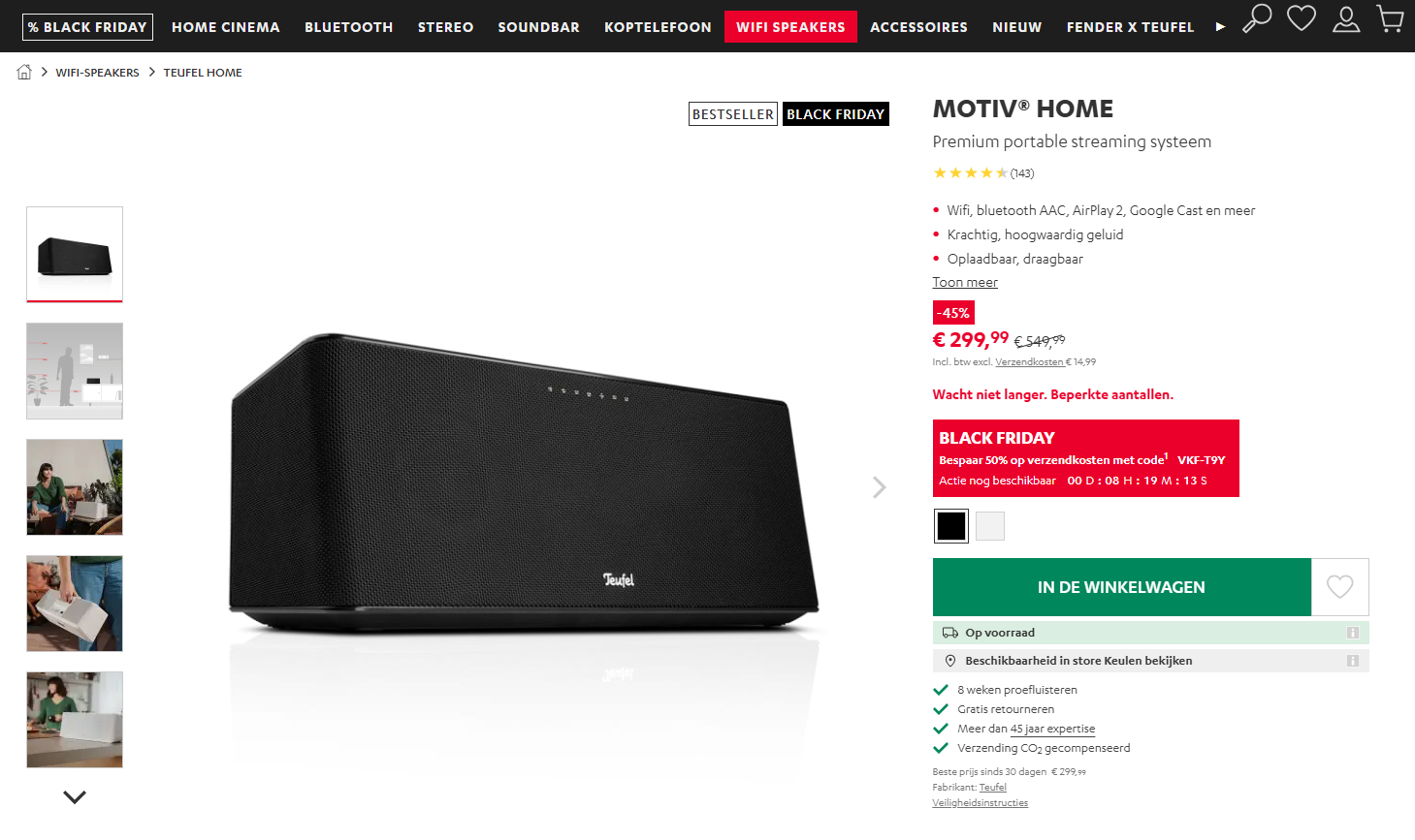 Op zijn website biedt Teufel de Motiv Home-installatie aan voor € 299 in plaats van € 549, met een aangekondigde korting van 45 %. Het laagste prijsniveau in de afgelopen 30 dagen was echter € 399. Dit had als referentieprijs moeten worden gebruikt, wat betekent dat de werkelijke korting slechts 25 % bedraagt.