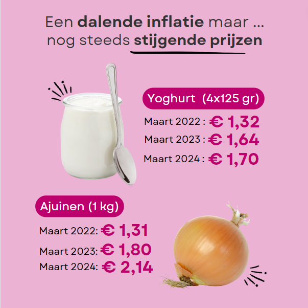 Die prijsdalingen moeten natuurlijk in perspectief gezet worden, omdat net deze producten vorig jaar al sterk in prijs waren gestegen. In twee jaar tijd werd brood 24% duurder en zuivel 28%. Gemiddeld stegen producten in de supermarkt met 26% in vergelijking met januari 2022, dat is de eerste maand met een inflatie van meer dan 2%.