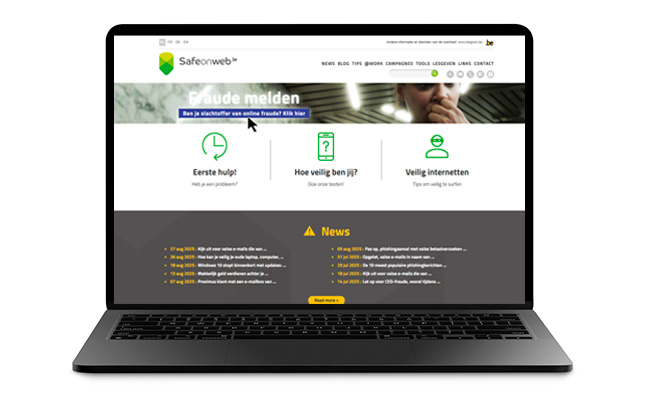Safeonweb.be is een initiatief van Centre of Cybersecurity in Belgium (CCB). Op deze site vind je tips en tricks tegen online fraude.