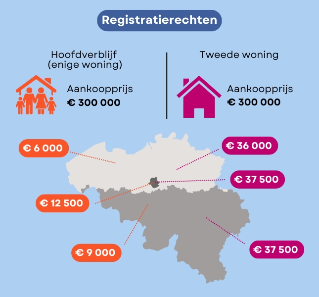 De registratierechten verschillen per gewest en zijn nu aanzienlijk anders in Vlaanderen, Brussel en Wallonië.