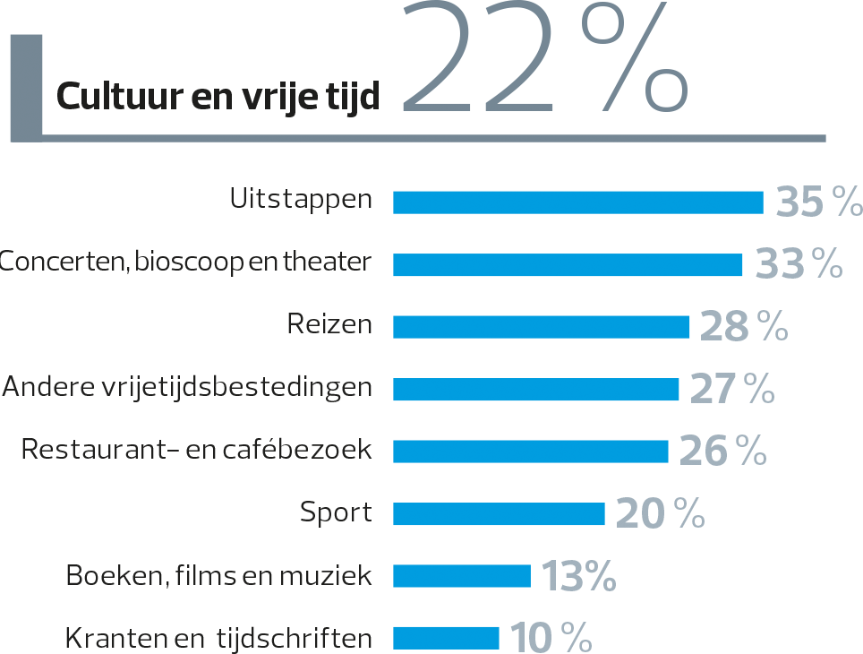 Als gezinnen in hun uitgaven moeten snoeien, besparen ze eerst en vooral op cultuur en vrije tijd (uitjes, vakantie, restaurantbezoek enz.). Dat verklaart deze hoge cijfers.