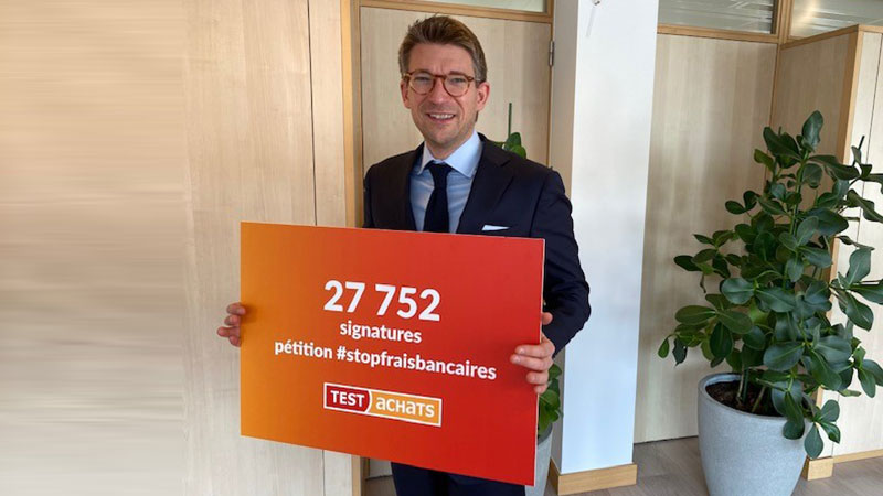 Om zijn eisen kracht bij te zetten overhandigde Test Aankoop zijn petitie aan staatssecretaris De Bleeker, bevoegd voor Consumentenzaken en aan minister Dermagne, bevoegd voor Economie. Voor de consumentenorganisatie is het prioritair dat er een moratorium wordt gezet op verdere kostenstijgingen van de bancaire diensten tot er een basis bankdienst op poten is gezet die voor iedereen die het wenst toegankelijk is en het mogelijk maakt zijn of haar bankzaken te blijven doen.
