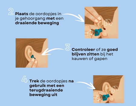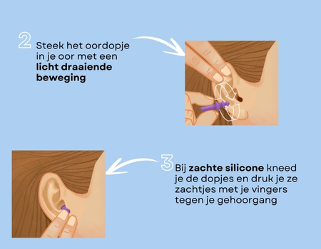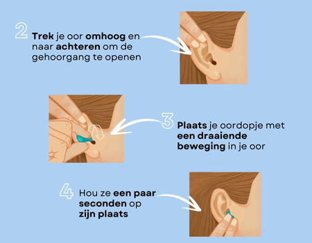 - Het correct inbrengen van je oordoppen zorgt voor een maximale doeltreffendheid. Daarom is het belangrijk om de instructies te volgen die bij je oordoppen worden geleverd.