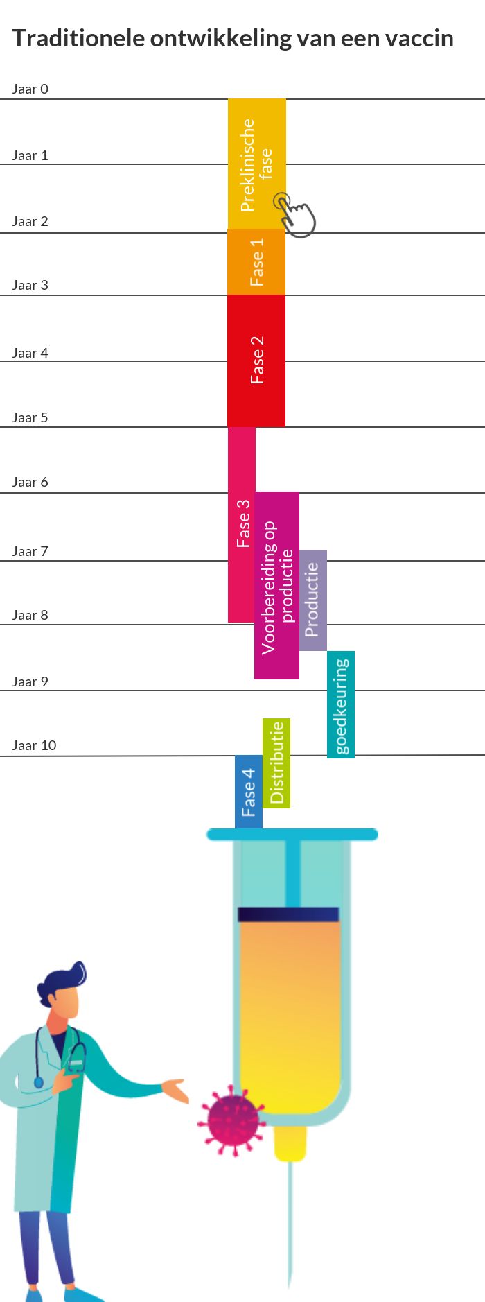 Een klassieke vaccinontwikkeling gebeurt in verschillende fases die elkaar opvolgen.
