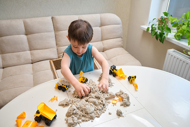 Wat moet ik doen als mijn kind thuis met speelzand speelt?