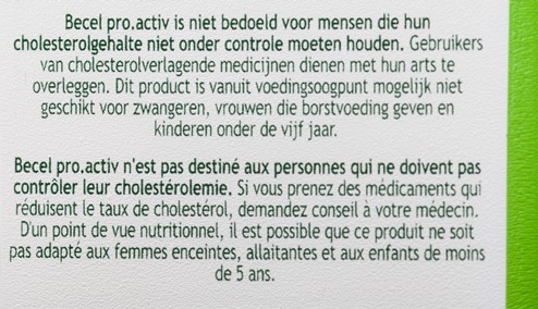 Tot nu toe moest de verpakking van voeding met een cholesterolverlagende werking verplicht volgende vermelding bevatten: "uitsluitend bedoeld voor mensen die hun bloedcholesterol willen verlagen".