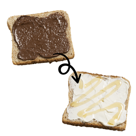 De chocopasta is het grootste probleem voor onze experts. Ze raden aan om in plaats daarvan twee boterhammen kip curry te maken, zoals ons recept met een saus op basis van yoghurt. Als Roxanne echt graag zoete beleg wil, kun je de spread eventueel vervangen voor verse kaas gezoet met een beetje honing. En waarom probeer je het voor de verandering eens niet met vegetarisch broodbeleg? Onze experts hebben ook groenten toegevoegd voor de afwisseling.