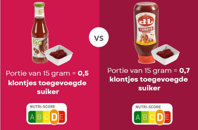 - Lucas heeft dan weer een voorliefde voor ketchup. Hoewel je het daar niet zou verwachten, zijn heel wat dressing-achtige sauzen zoet. En vaak gaat het niet enkel om de suiker die bijvoorbeeld in het geval van de ketchup uit de tomaten komt, maar ook suikers die extra worden toegevoegd. Dat verklaart gedeeltelijk de Nutri-Score D.