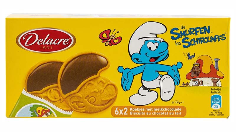 Smurfen van Delacre: Op de verpakking van deze Delacre-koekjes staat de voedingswaarde van één enkel koekje, terwijl een zakje twee koekjes bevat. Een portie zou dus overeen moeten komen met twee koekjes.