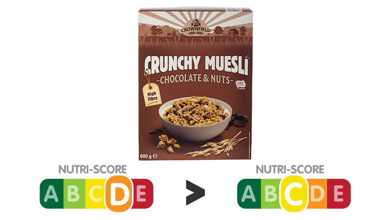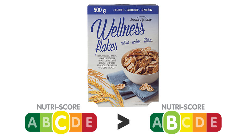 Minder suiker en meer vezels. Dankzij deze aanpassingen stijgen deze granen van D naar C.