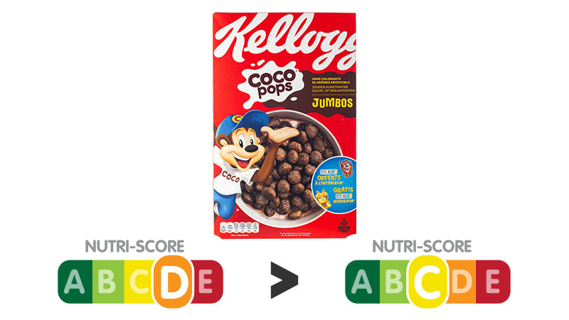 De Nutri-Score spoort bovendien de fabrikanten aan om de samenstelling van hun producten te herzien. Uit de update van onze koopwijzers voor snacks voor kinderen en ontbijtgranen blijkt dat de Nutri-Score van veel producten is verbeterd.
