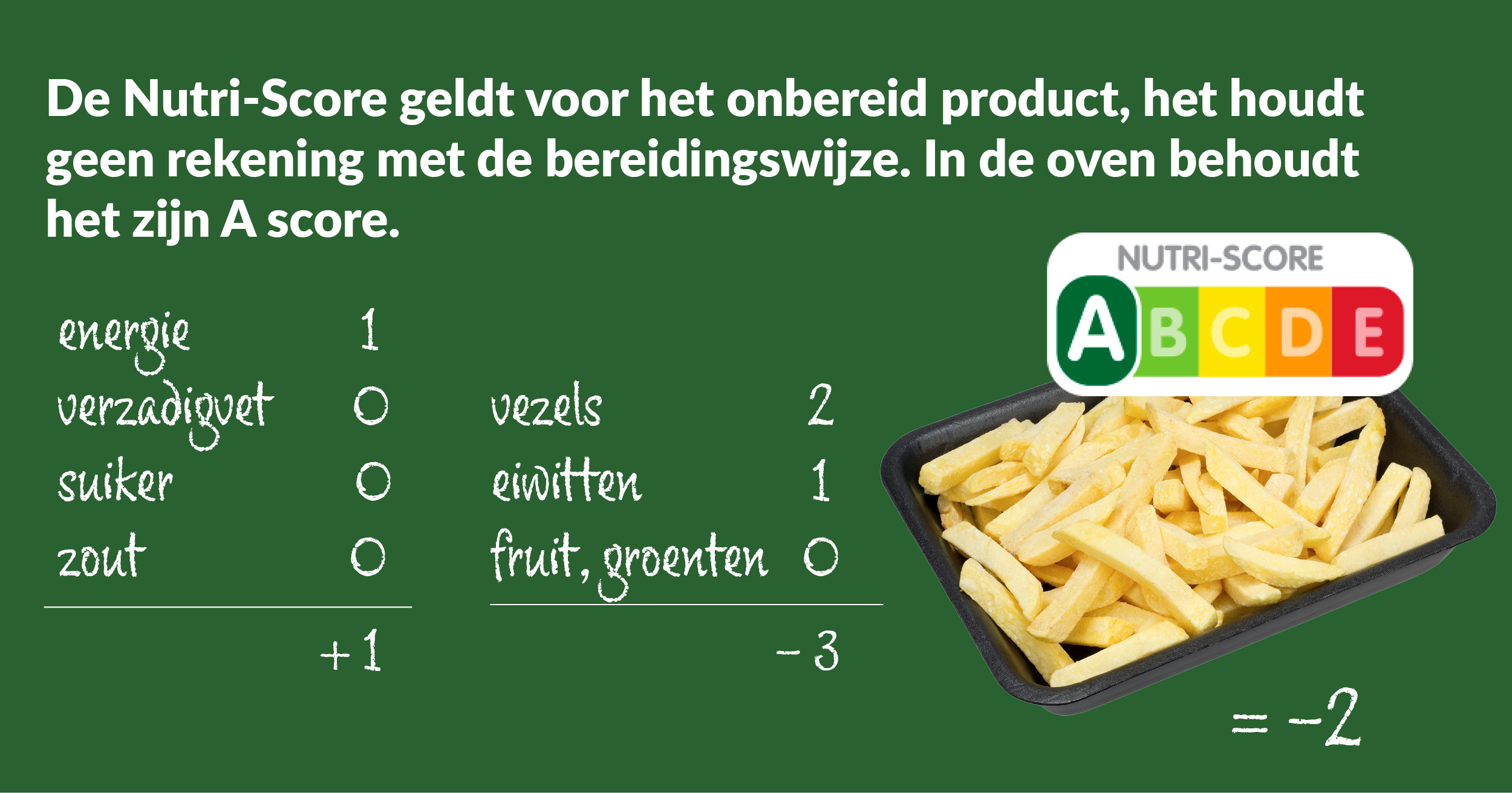Geregeld contacteren consumenten ons met vragen over “rare” Nutri-Scores. Het zijn zulke gevallen die het vertrouwen in en de kennis over het label kunnen ondermijnen. Enkele van deze misverstanden willen we hieronder alvast de wereld uit helpen door te tonen hoe de Nutri-Score van enkele producten tot stand komt.