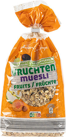 Dat is bijvoorbeeld het geval voor de muesli van Delhaize, de Boni Selection-muesli (niet bio), Country Store van Kellogg's, de Crownfield-muesli van Lidl en Fruit & Note van Albert Heijn. Ze bevatten immers gekonfijte vruchten en bananenchips die werden geweekt in een suikeroplossing.