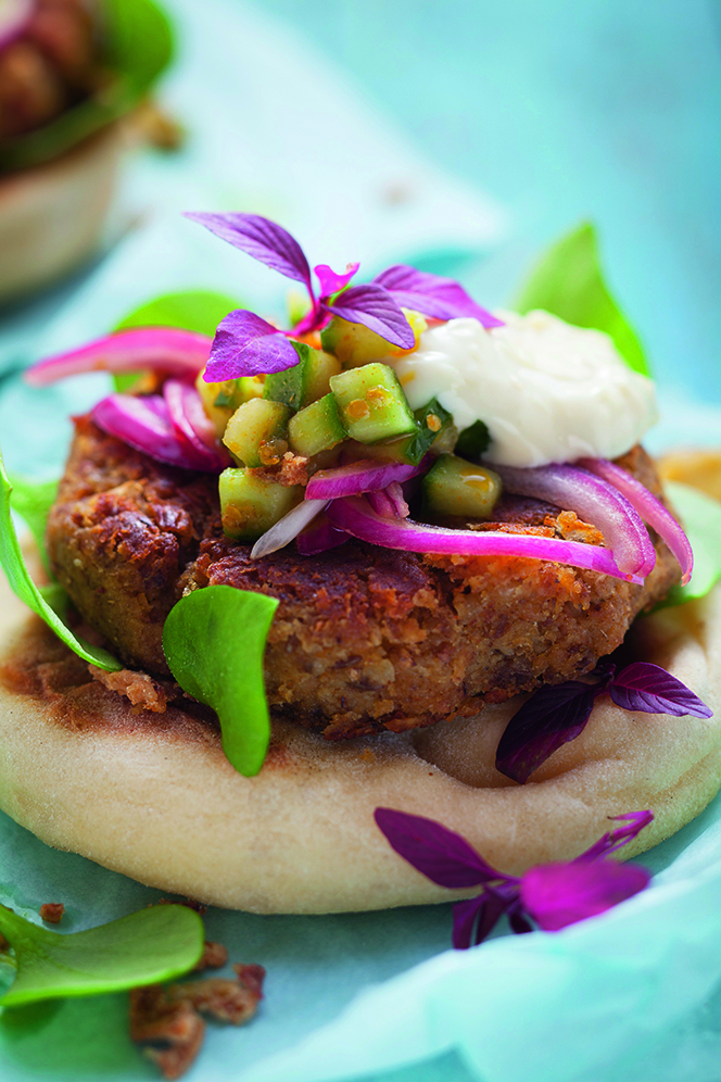 Een heerlijk recept voor zes huisgemaakte veganistische burgers uit onze praktische gids "50 vegetarische recepten". Bereidingstijd: 45 minuten.