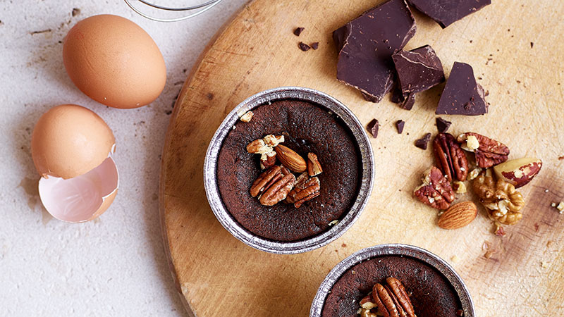 Voor het dessert kunnen brownies en gebakjes perfect gecombineerd worden met noten, bijvoorbeeld met pecannoten.