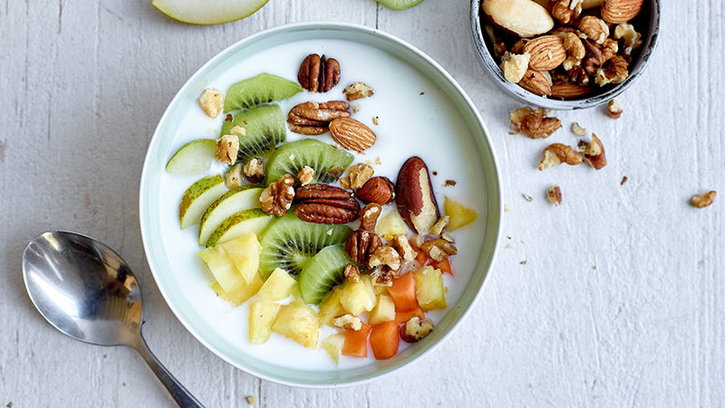 Meng wat gehakte noten door je yoghurt of maak een “huisgemaakte” granola door er je favoriete noten aan toe te voegen.