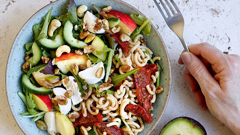 Geef je slaatje wat extra smaak en stevigheid door er een mengeling gehakte of gemalen noten aan toe te voegen.
