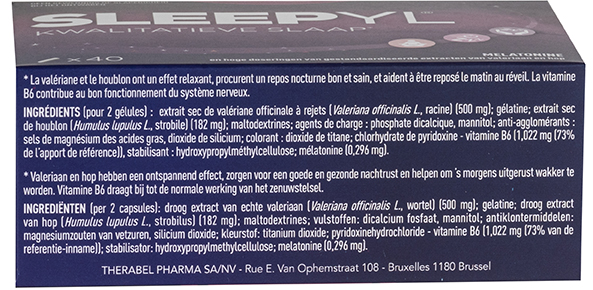 Dagdosering is twee capsules: combinatie van valeriaan, hop, vitamine B6, melatonine.