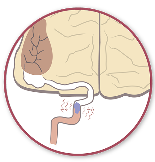 In het bloed vormt zich een prop, die in de aders naar de hersenen terechtkomt.