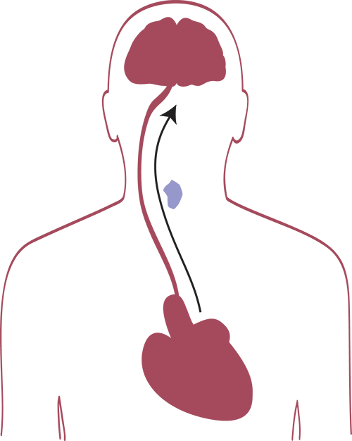 De toevoer van zuurstof naar de hersenen wordt geblokkeerd.
