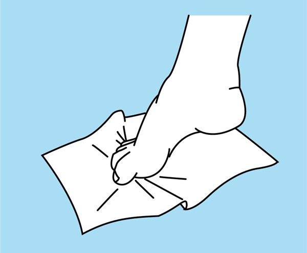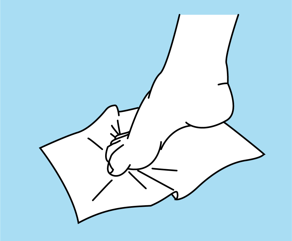 Grijp een handdoek vast met je tenen. Neem deze vast en laat weer los.