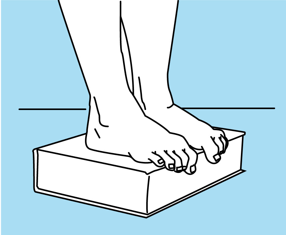Sta recht op een dik boek en grijp de rand ervan met je tenen, en strek ze vervolgens uit.