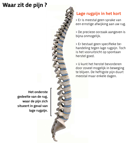 Ook is de kans groot dat u na uw herstel later toch weer last krijgt van lagerugpijn. Cijfers hierover lopen sterk uiteen: naargelang van de bron zou de pijn in 24 tot 80% van de gevallen binnen het jaar terugkeren.