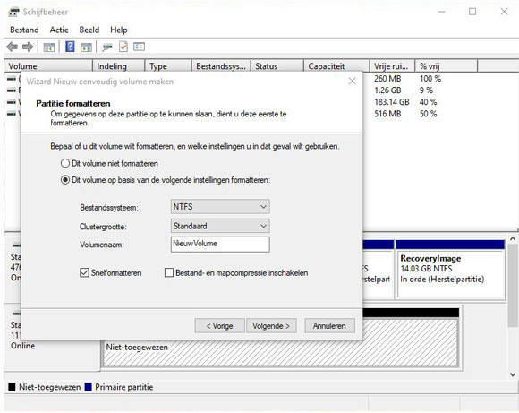 - Klik met de rechtermuisknop op de SSD en selecteer Nieuw eenvoudig volume. Volg de stappen van de wizard. Wat het bestandssysteem betreft moet je dit volume formatteren in exFAT. Zo kan je de SSD zowel in Windows als in macOS gebruiken en is je SSD ook compatibel met een PlayStation-console. Je kan ook NTFS selecteren als je de SSD exclusief in Windows wilt gebruiken.