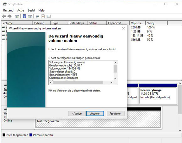 - Volg de laatste stappen. De wizard zal je informeren als de operatie geslaagd is. Je SSD is nu geconfigureerd en klaar voor gebruik.