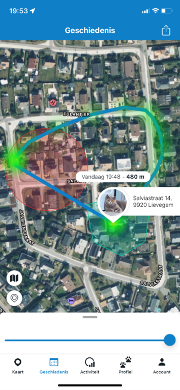 De app houdt bij waar je hond of kat overal is geweest. Op die manier leer je de favoriete plekken kennen. Sommige apps gebruiken daarvoor een heatmap zodat je de hotspots en routes ziet.