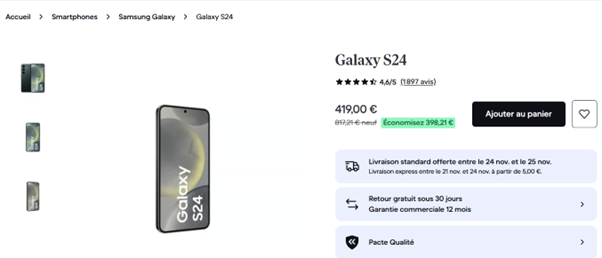 Bijvoorbeeld, voor een Samsung Galaxy S24 "in aanbieding" op Back Market: