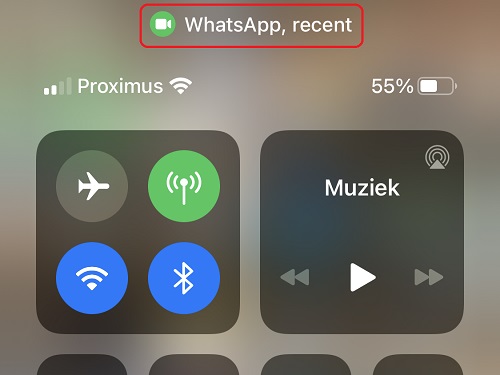 Wanneer je het Bedieningspaneel opent (ga met je vinger vanaf de rechterbovenhoek van het scherm naar beneden), zie je bovenaan in de lijst bovendien wanneer de camera of microfoon voor het laatst is gebruikt.