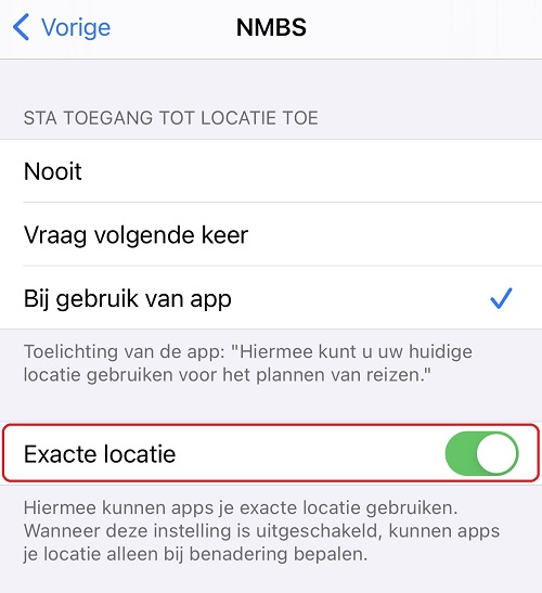 Ga naar Instellingen > Privacy > Locatievoorzieningen. Hier geven sommige apps (geval per geval te verifiëren) je de mogelijkheid om je geografische positie slechts gedeeltelijk kenbaar te maken, en niet je precieze gps-coördinaten. Wanneer de nieuwe instelling Exacte locatie uitgeschakeld is, wordt je locatie bij benadering gedeeld met de app, zodat je verplaatsingen minder efficiënt gevolgd kunnen worden. Opgelet: voor betrouwbare en nuttige apps, zoals de Belgische app voor noodhulp 112 BE, kun je best je exacte locatie blijven delen!