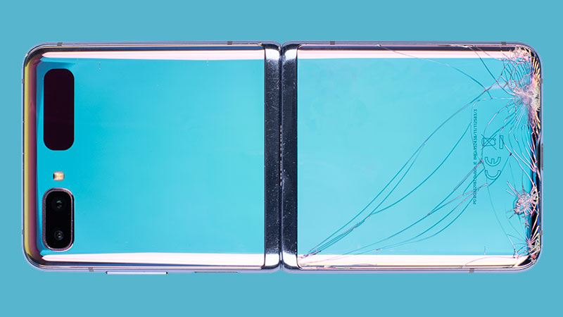 Of veeleer het gebrek daaraan. In ons labo bleek de plooibare smartphone immers niet goed bestand tegen een val van op een meter hoogte. De achterkant raakte erg beschadigd en het scherm vertoonde meerdere barsten.