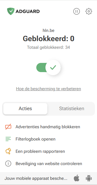 Misschien een minder bekende naam, maar wel een zeer goede adblocker, te downloaden via deze link. AdGuard slaagt erin om 19% minder data te downloaden en kan malware blokkeren die verborgen zit in reclame.