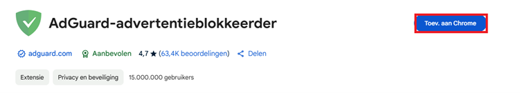 Selecteer de adblocker die je wilt installeren en klik op Toev. aan Chrome en vervolgens op Extensie toevoegen om te bevestigen.