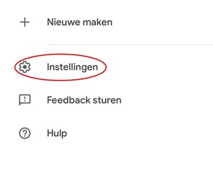 2. Klik op de drie horizontale streepjes linksboven. Scroll in het menu helemaal naar beneden tot de rubriek "Instellingen".
